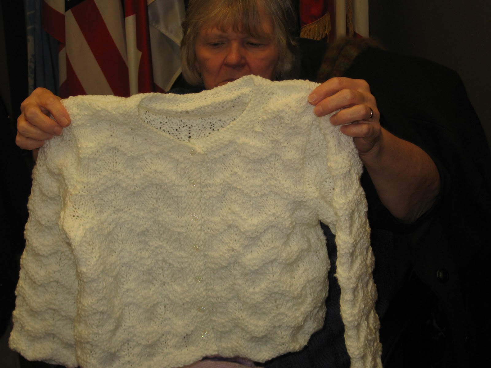 and Ulrika showing a lovely baby blanket.