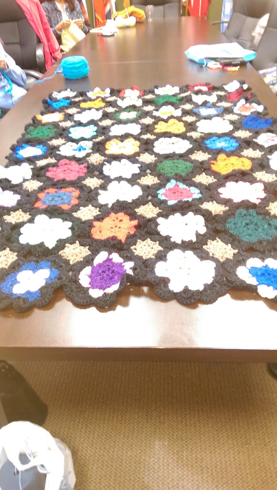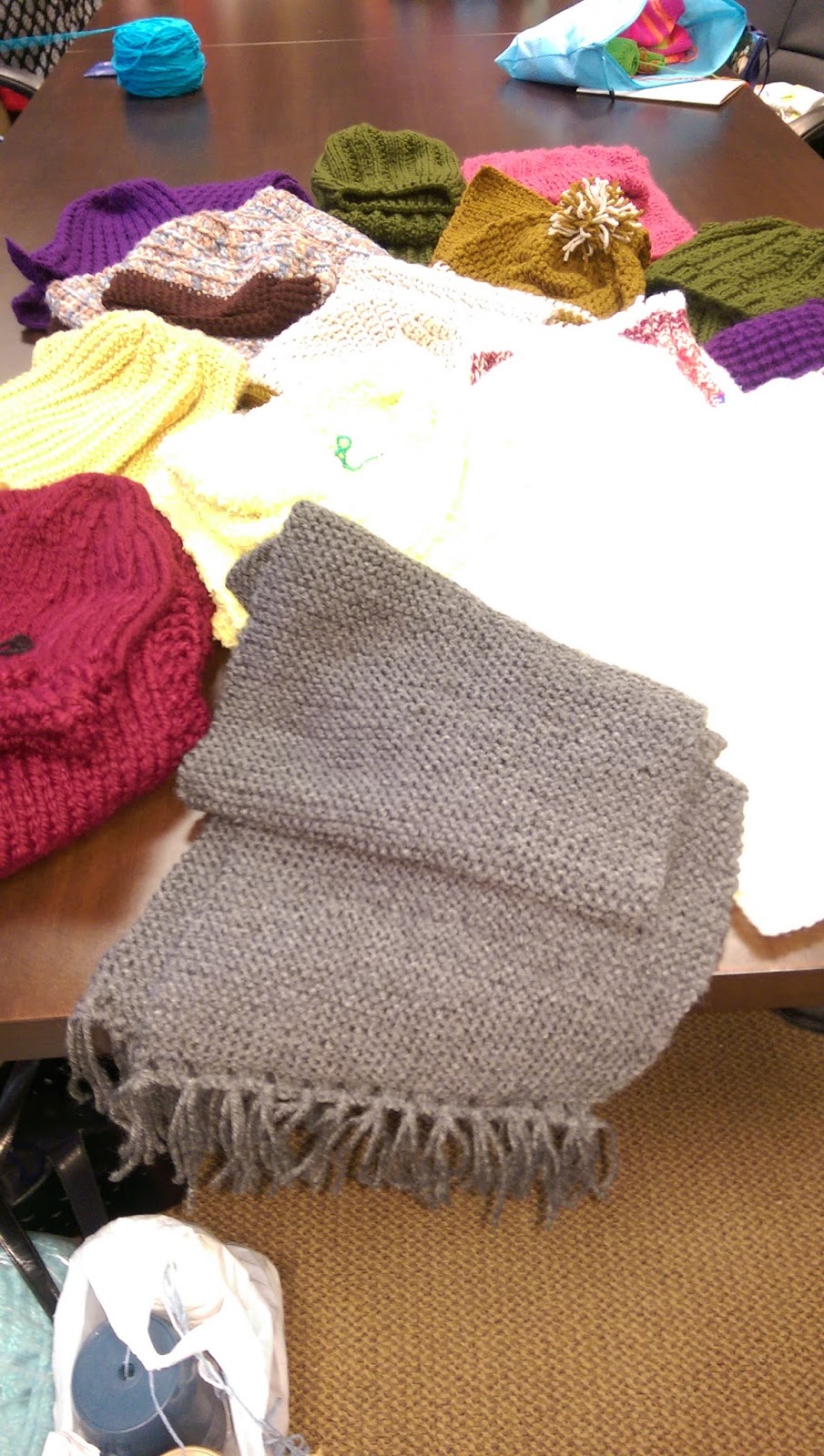 Twelve beautiful blankets, and lots of hat and scarves. Great work ladies.
